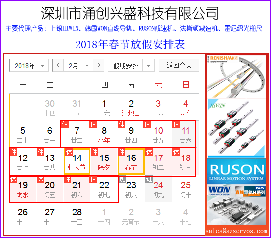 放假期間,為了方便您在節(jié)日期間獲得我們的客戶服務,您可以通過電子郵箱:sales@szservos.com與相關服務人員取得聯(lián)系。