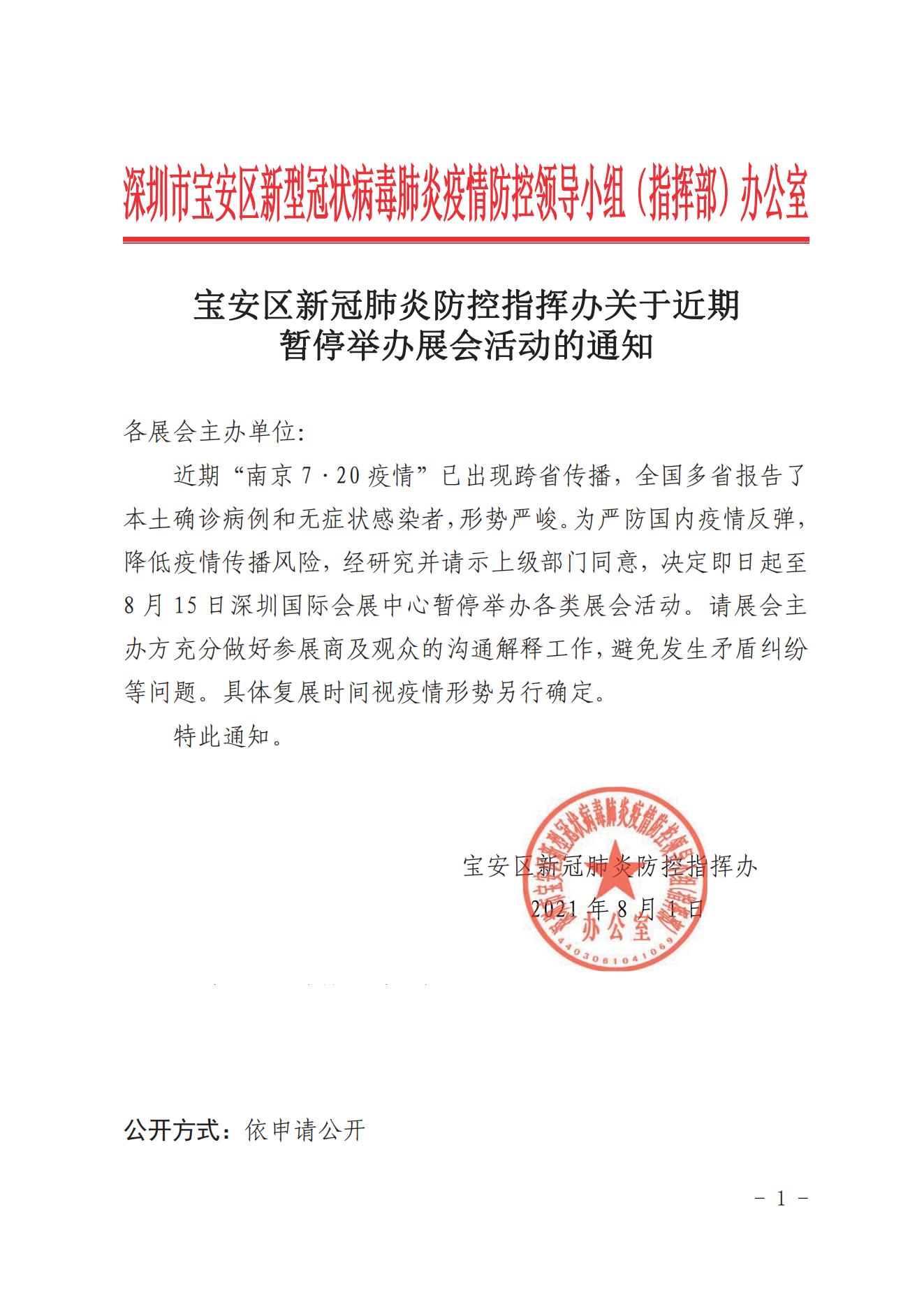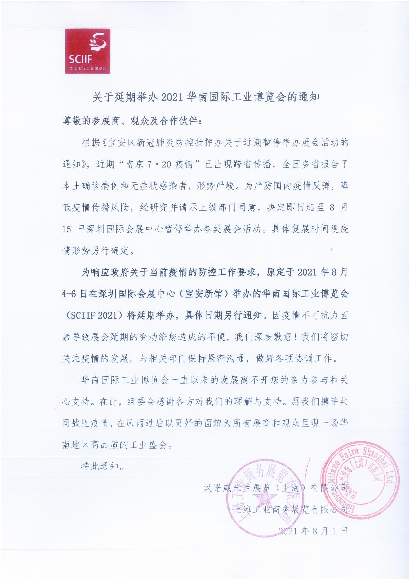接通知,受相關(guān)疫情影響,原定于8月3日的展會(huì)延期