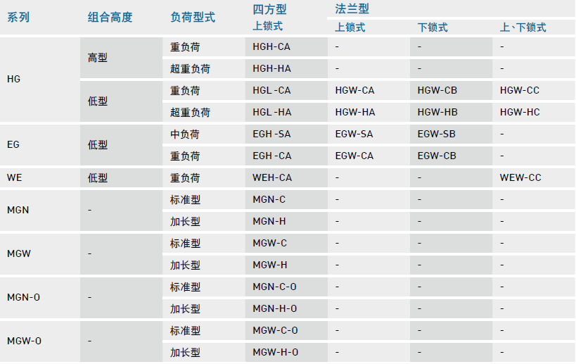 HIWIN上銀直線導(dǎo)軌產(chǎn)品系列總表
