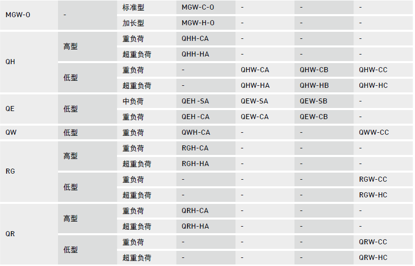 為服務(wù)客戶因應(yīng)其對產(chǎn)品多樣性的需求,除了適用一般工具機產(chǎn)業(yè)的HG系列外,更研究開發(fā)出較適合自動化產(chǎn)業(yè)的EG系列以及適合于單軸設(shè)備使用的WE/QW系列;且研究開發(fā)出適合高剛性需求產(chǎn)業(yè)的RG/QR系列及微小型機械半導(dǎo)體產(chǎn)業(yè)適用之MGN/MGW系列;并針對高科技產(chǎn)業(yè)研究開發(fā)出具有高速、寧靜、低發(fā)塵需求的QH/QE系列產(chǎn)品。
