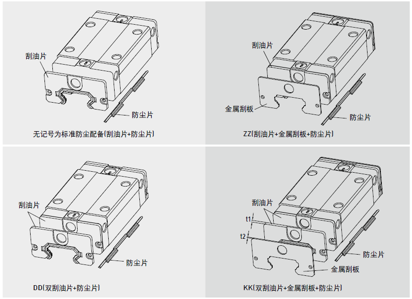 阻止加工鐵屑或塵粒進(jìn)入滑塊里面,破壞珠道表面而降低直線導(dǎo)軌壽命。