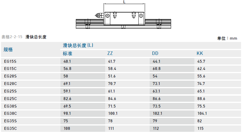 (3) 各防塵代碼之滑塊總長(zhǎng)度