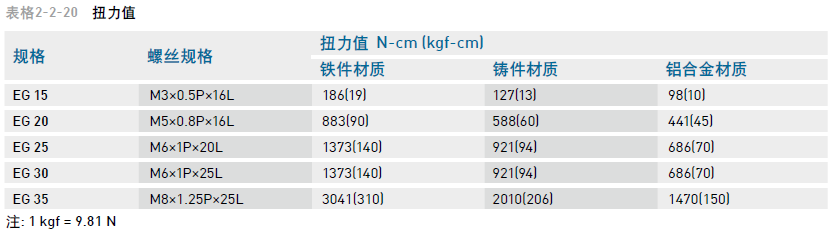 (2) 導(dǎo)軌裝配螺絲之扭力值