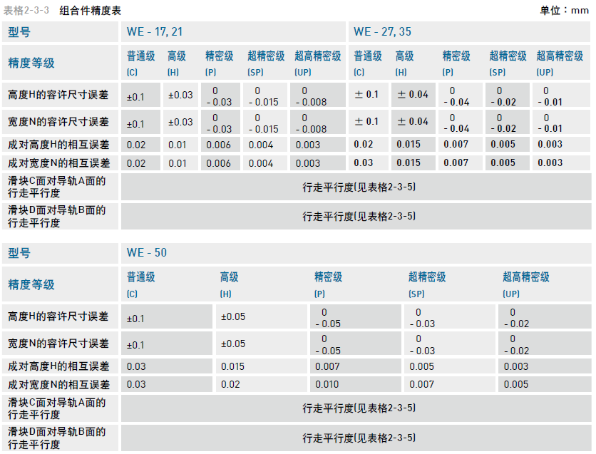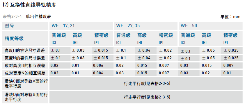 寬幅型滾珠直線導(dǎo)軌WE系列精度等級(jí)
