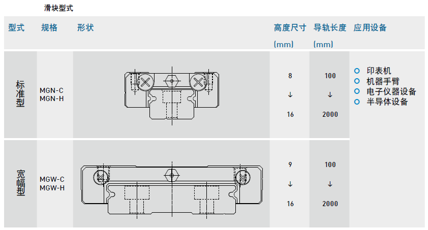 (2) 互換性直線導(dǎo)軌產(chǎn)品型號(hào)
