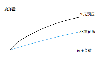 預(yù)壓力是預(yù)先給與鋼珠負(fù)荷力,亦即加大鋼珠直徑,利用鋼珠與珠道之間負(fù)向間隙給與預(yù)壓,此舉能提高直線導(dǎo)軌的剛性及消除間隙;以右圖來解釋,提高預(yù)壓力可增加直線導(dǎo)軌剛性。但小規(guī)格建議選用輕預(yù)壓以下預(yù)壓,以避免因預(yù)壓選用過重降低其使用壽命。
