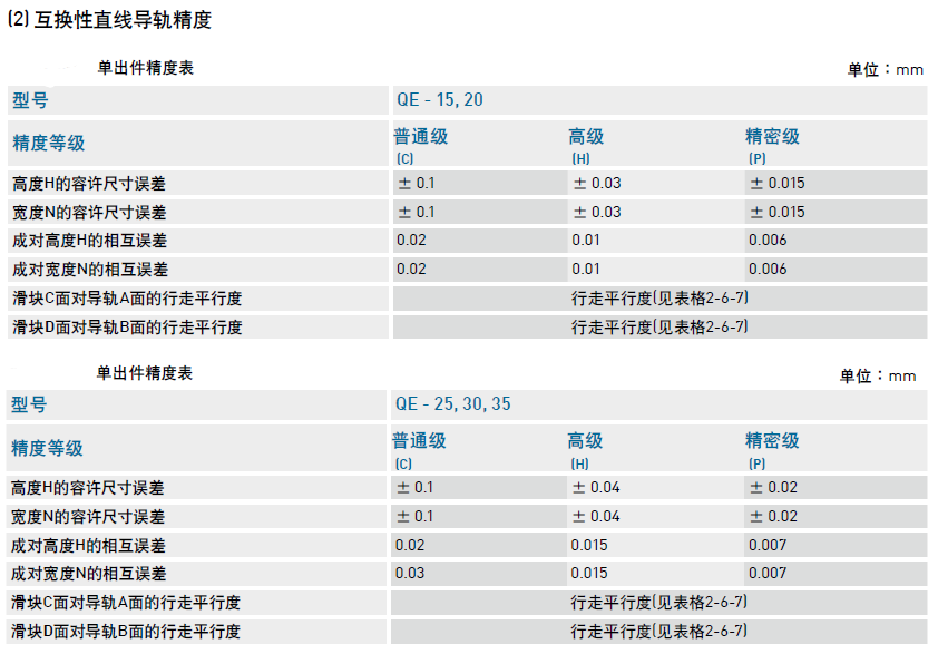 直線(xiàn)導(dǎo)軌精度等級(jí)對(duì)照表
