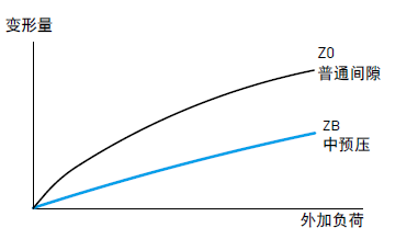 預(yù)壓力是預(yù)先給與鋼珠負(fù)荷力,亦即加大鋼珠直徑,利用鋼珠與珠道之間負(fù)向間隙給與預(yù)壓,此舉能提高直線導(dǎo)軌的剛性及消除間隙;以上圖來解釋,提高預(yù)壓力可增加直線導(dǎo)軌剛性。但小規(guī)格建議選用輕預(yù)壓以下預(yù)壓,以避免因預(yù)壓選用過重降