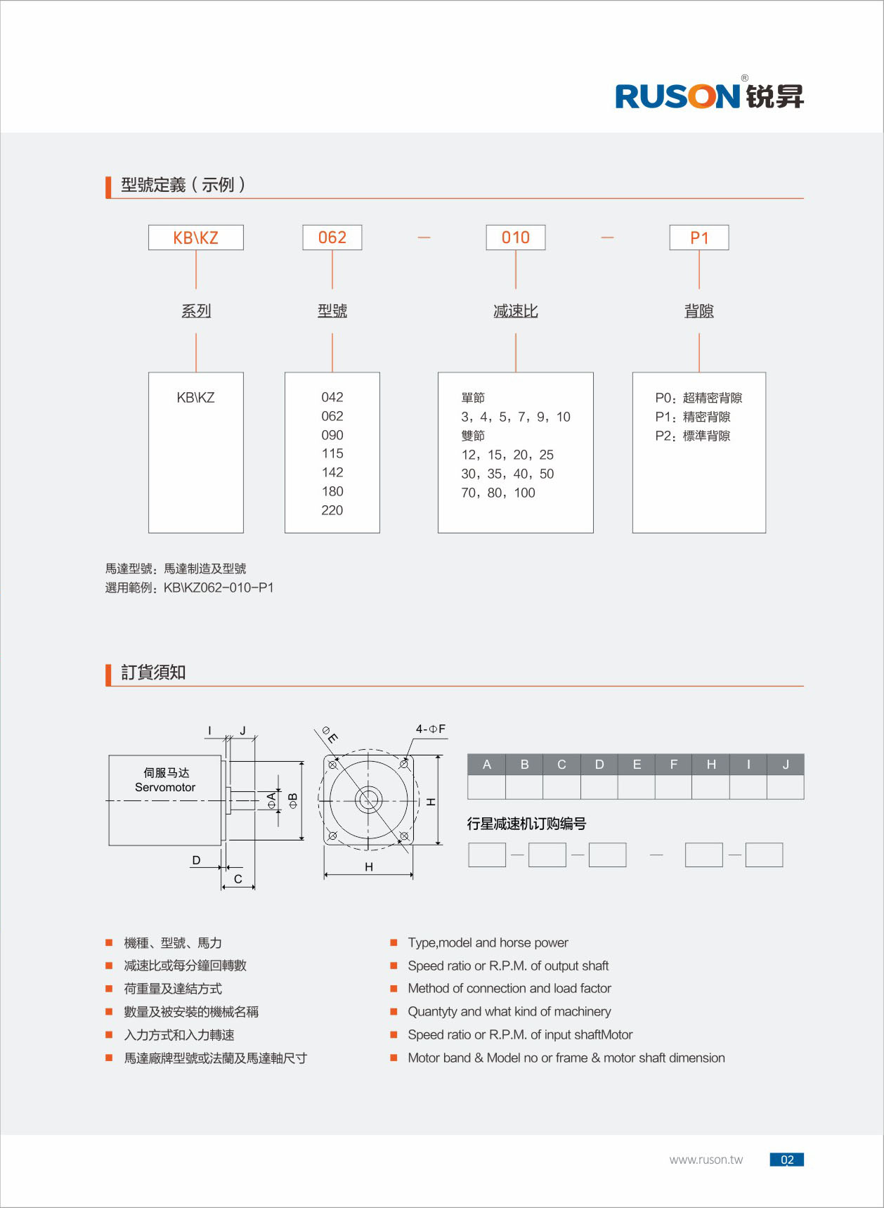 型號分為:KB42、KB62、KB90、KB115、KB142、KB180、KB220